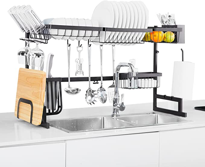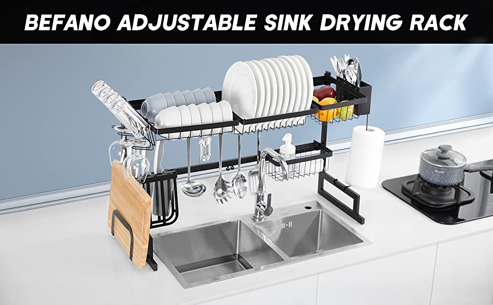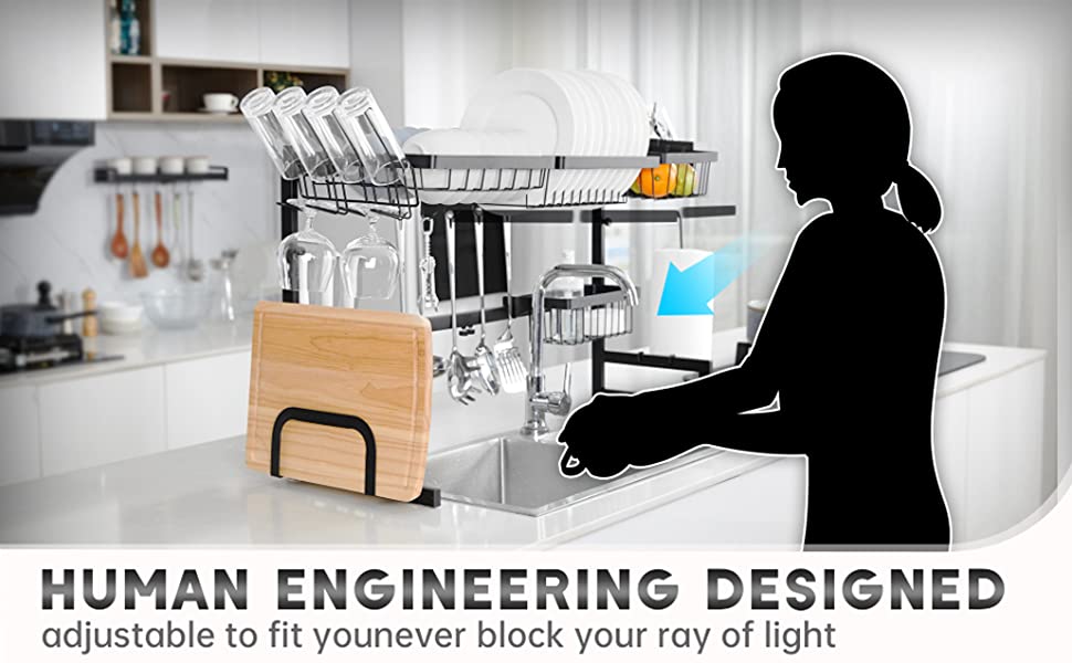 -Ahorro de espacio: almacenamiento efectivo y limpieza de su cocina. El diseño sobre el fregadero te ayuda a aprovechar al máximo el espacio sobre el fregadero y ahorra mucho más espacio en la cocina.