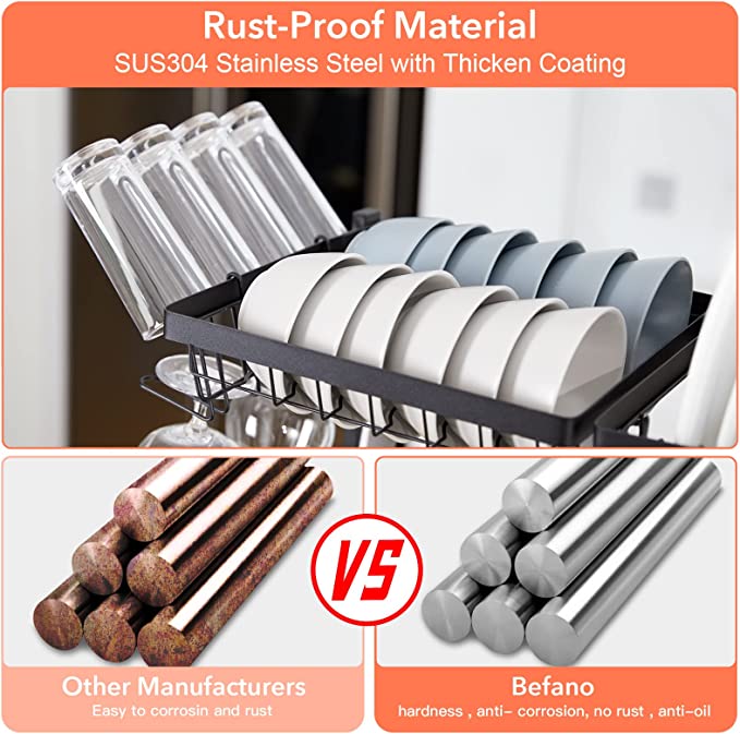 -Duradero y resistente: material de acero inoxidable 304 de alta calidad que garantiza una durabilidad duradera y fácil de limpiar. Y la capa a prueba de óxido mantiene su tendedero de platos alejado de la oxidación durante mucho tiempo.